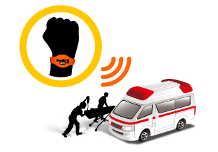 万が一の際はメディカリストバンドから救急対応に必要な情報を迅速に医療機関へ提供。